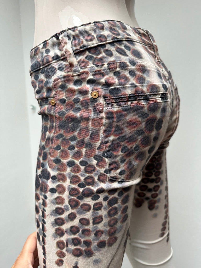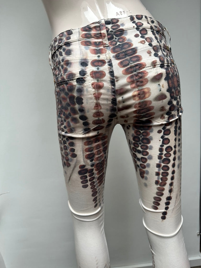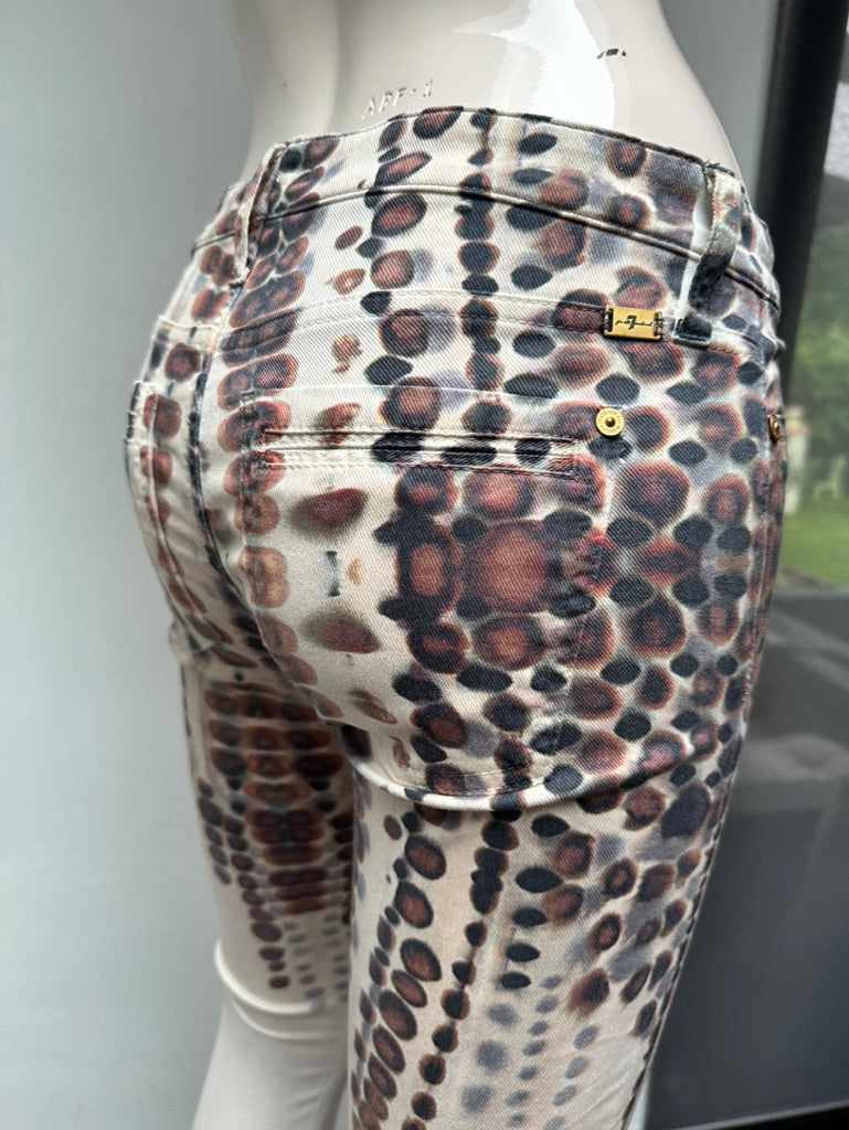 Lichte broek met bruine print in skinny fit. Het broekje valt vrij smal en heeft minimale draagsporen.