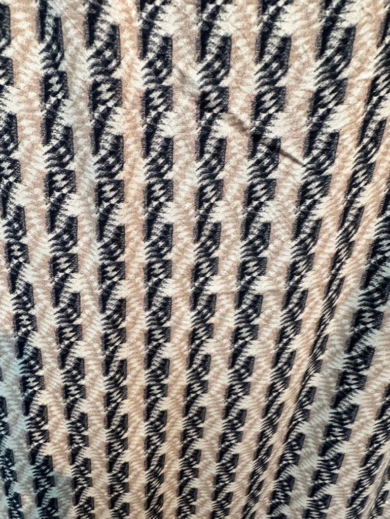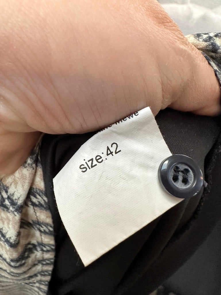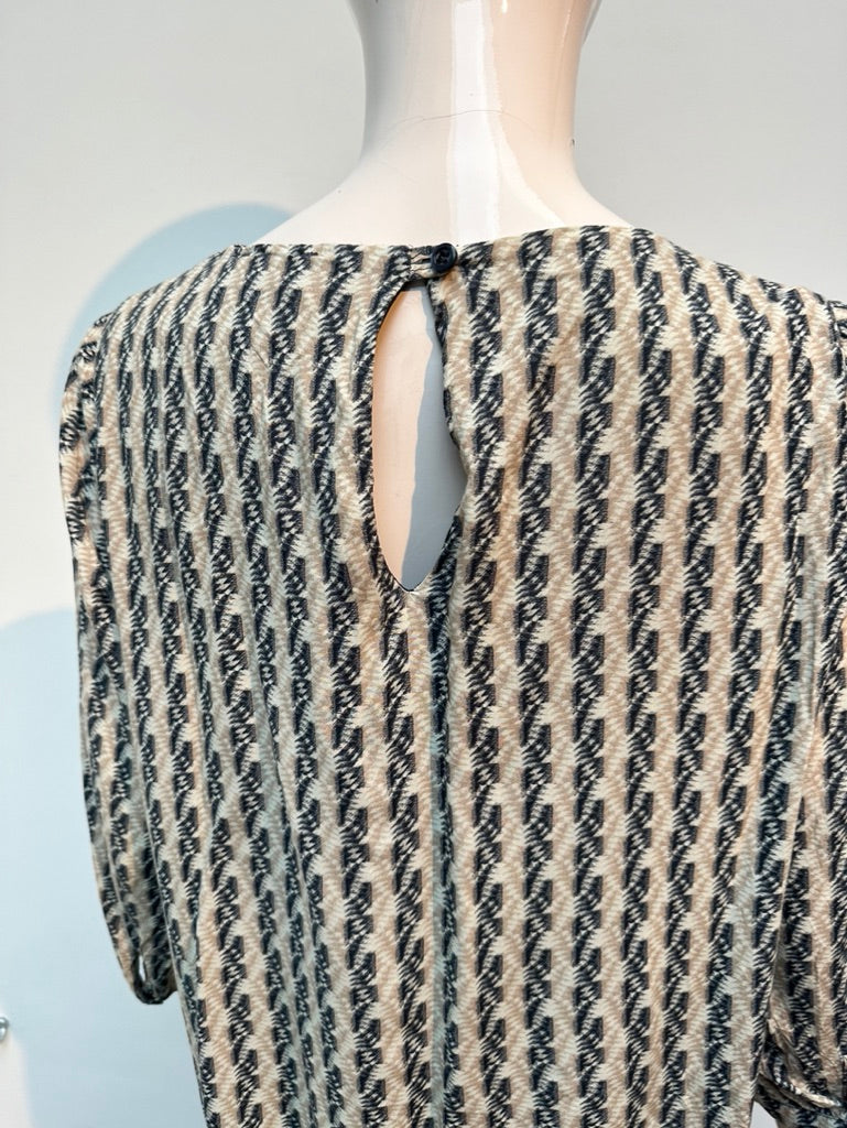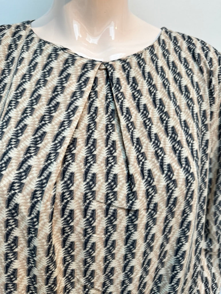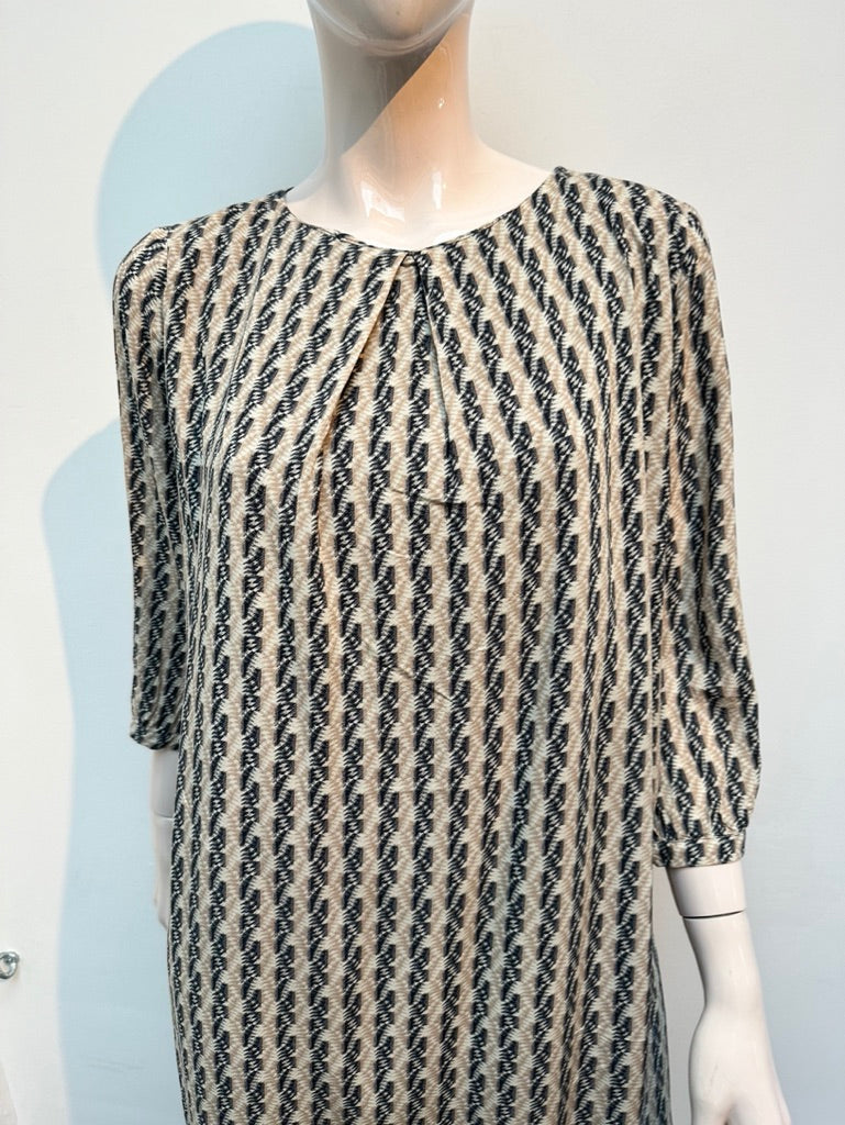 Mooie jurk met ronde hals en driekwart mouw, van soepele viscose. De jurk is deels gevoerd en ziet er nog erg mooi uit!