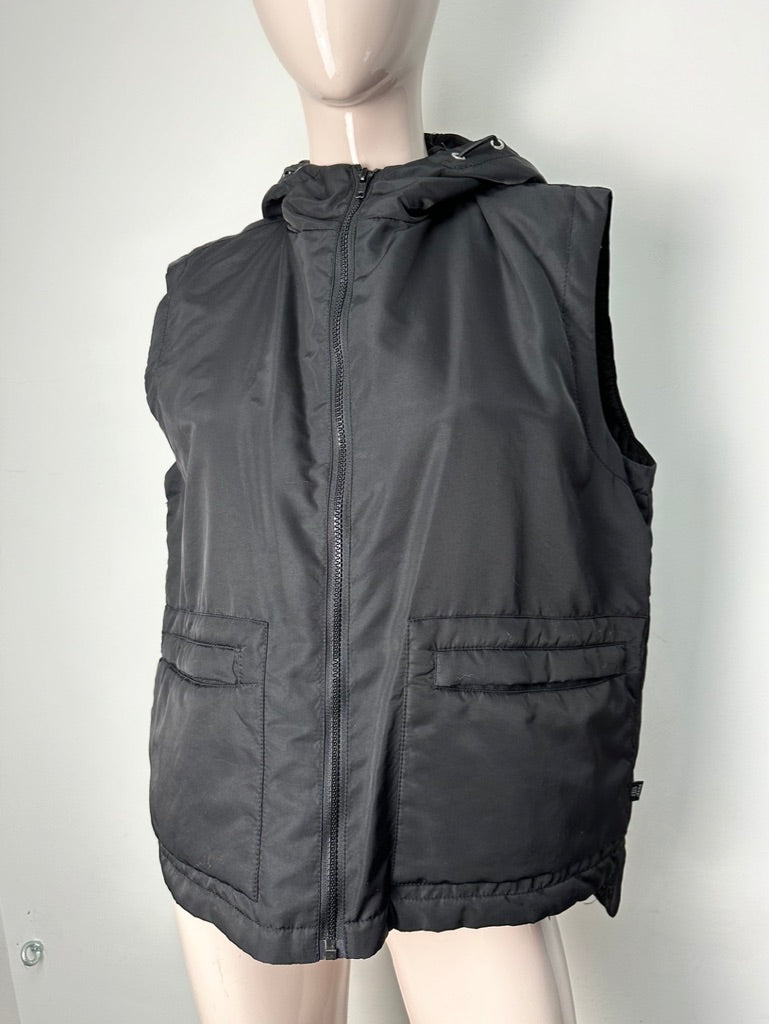 Deze Bandolera Bodywarmer in maat 40 is een uniek kledingstuk dat je niet mag missen in je garderobe. Het is een dunne bodywarmer met een capuchon, perfect voor de koudere dagen. Het is in zeer goede staat en ziet er nog als nieuw uit. De zwarte kleur maakt het makkelijk te combineren met verschillende outfits.