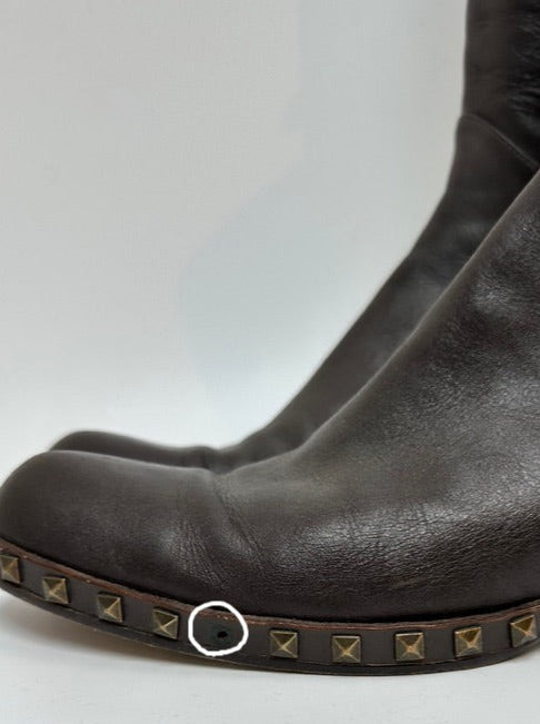 De schachthoogte van deze laarzen is 37 cm en de wijdte is 17 cm (plat gemeten). De hakhoogte is 3,5 cm. Deze laarzen hebben oorspronkelijk €799 gekost, dus je krijgt een geweldige deal voor een designer item.